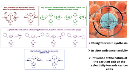 Synthesis, characterization and anticancer activity of palladium allyl complexes bearing benzimidazole-based N-heterocyclic carbene (NHC) ligands.