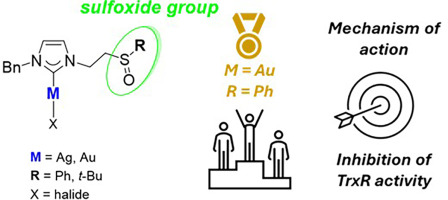 Gold(I) complexes with NHC ligands functionalized with sulfoxide groups: Design, synthesis, in vitro studies and insights into the mechanism of action as anticancer drugs